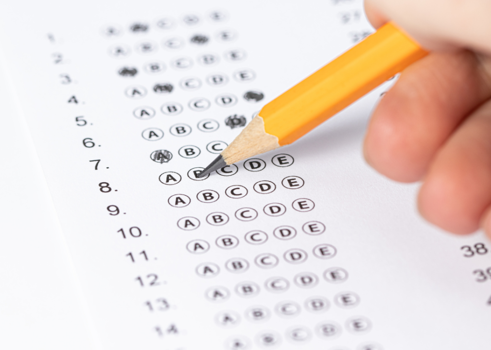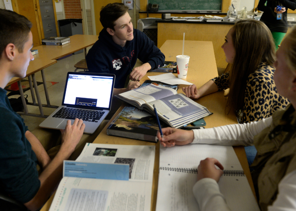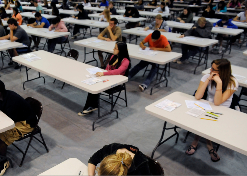 A group of students taking an AP exam at West Potomac High School in Alexandria, Virginia