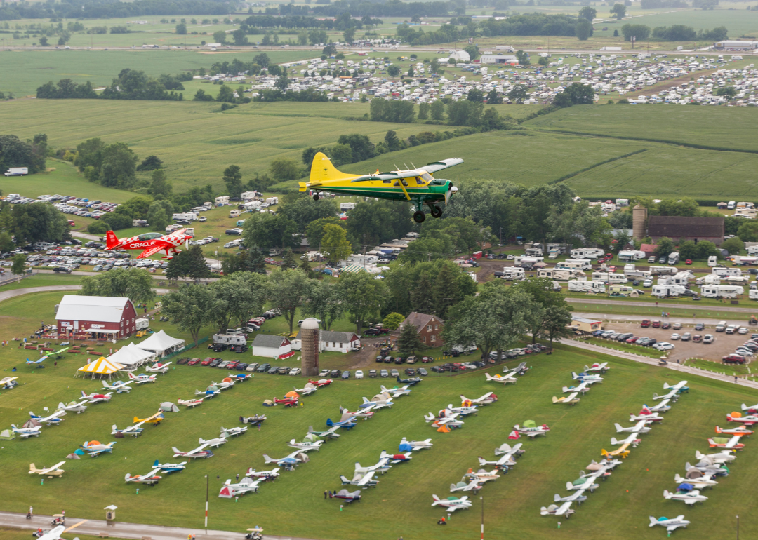 Aerial photo of a de Havilland Beaver plane at air show in Wisconsin
