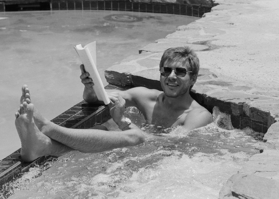 Harrison Ford poses in his pool with a script