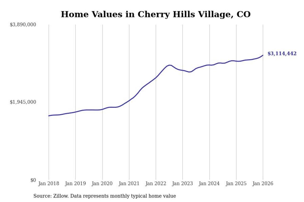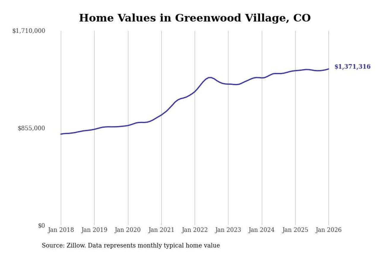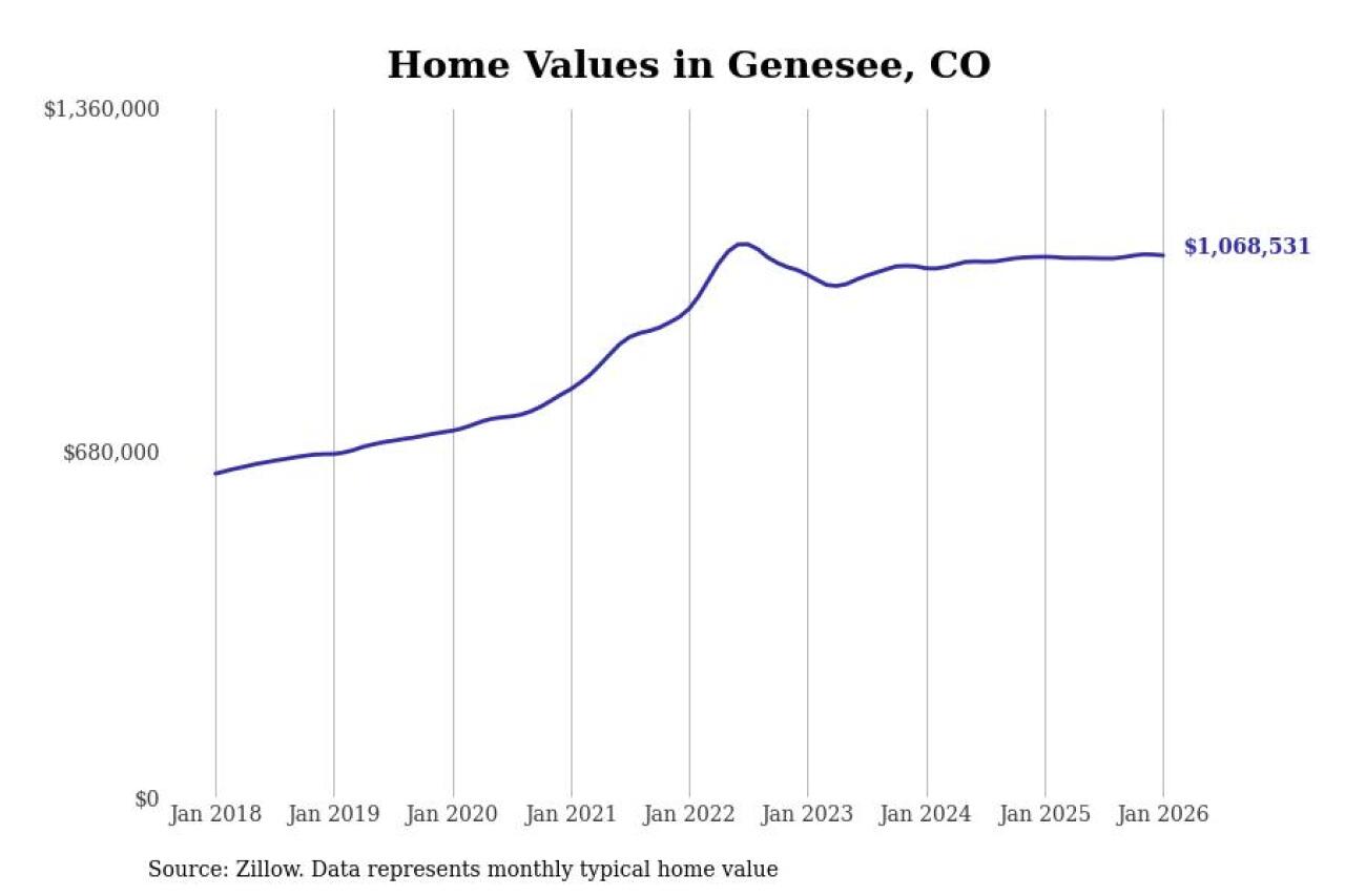 Stacker compiled a list of cities with the most expensive homes in the Denver metro area using data from Zillow. Charts show the monthly typical home value since January 2018. Data was available for 76 cities and towns.
