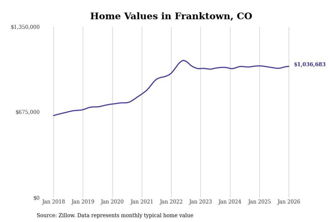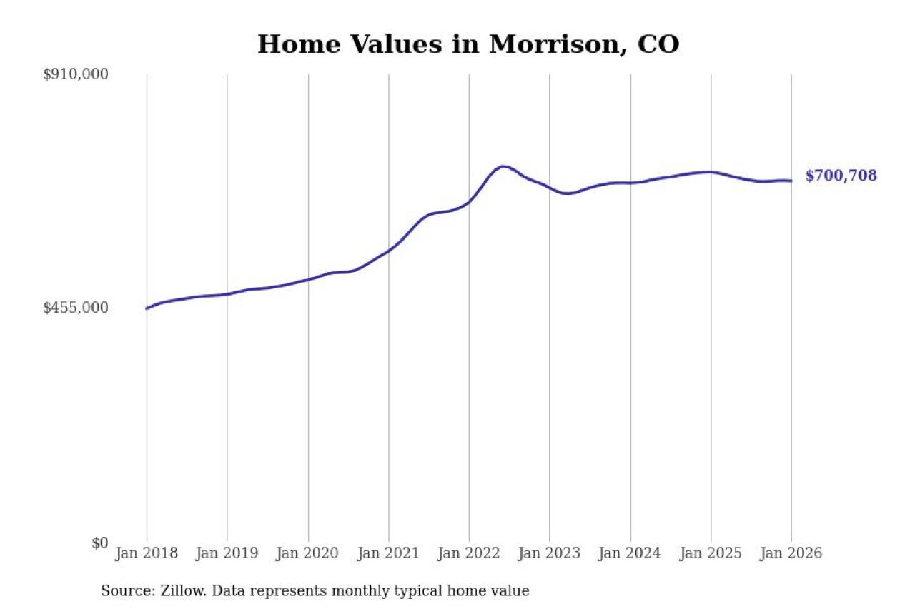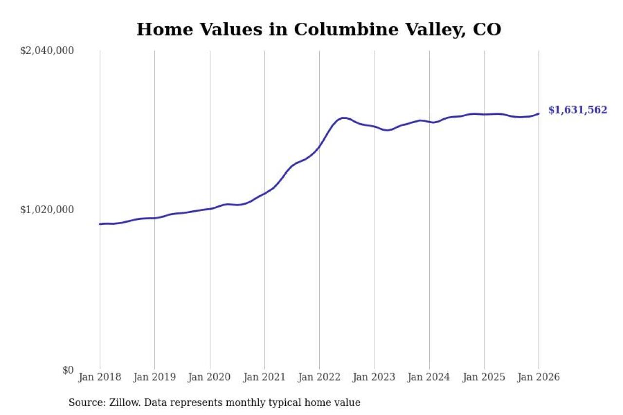 Stacker compiled a list of cities with the most expensive homes in the Denver metro area using data from Zillow. Charts show the monthly typical home value since January 2018. Data was available for 76 cities and towns.