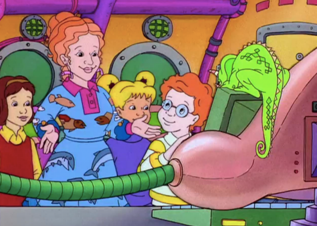Known for her vibrant frizzy red hairdo and bold-patterned purple dresses, Ms. Frizzle (voiced by Lily Tomlin) is the star of the 1990s animated children’s series “The Magic School Bus.” Throughout the show, the oddball elementary school teacher takes her students on imaginative, educational adventures aboard a magic school bus.