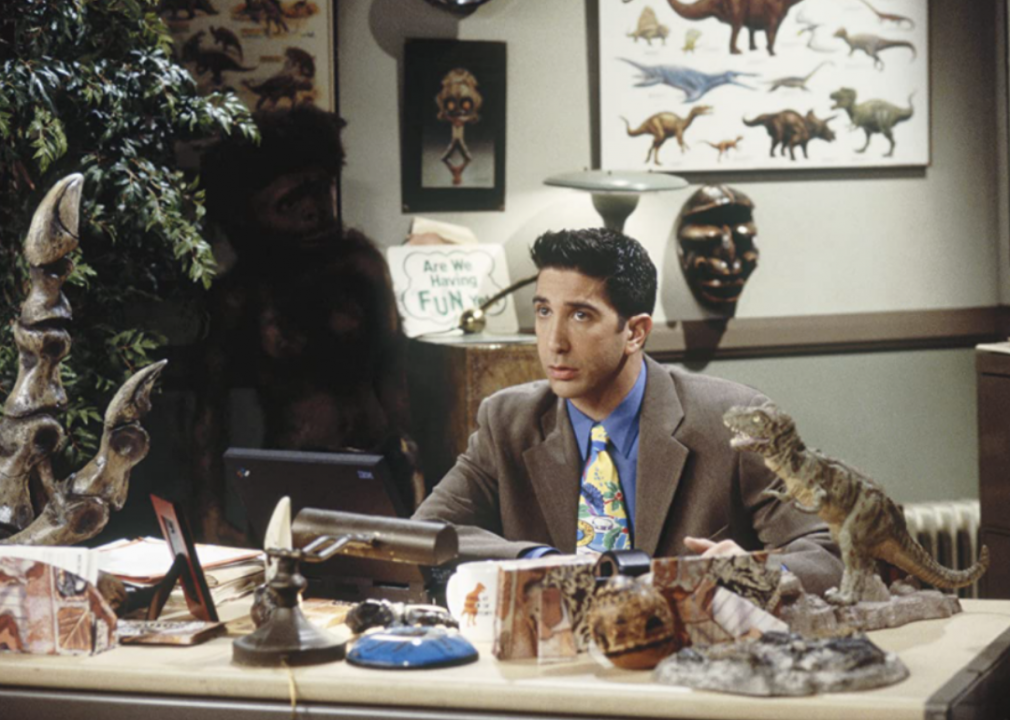 One of television’s most noteworthy nerds, Dr. Ross Geller (David Schwimmer) is a member of the close-knit New York City clique around which the show “Friends” revolves. Ross is the group’s token brainiac and works as a paleontologist and professor. Some devoted fans even took the time to make him a Rate My Professors page on social media.