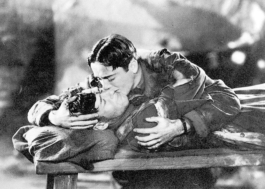 The silent war film “Wings” was the first movie to win Best Picture at the Academy Awards and also depicted one of the earliest onscreen same-sex kisses. In one scene, a young soldier tenderly kisses his dying friend on the mouth, which was a common practice in the trenches of World War I.