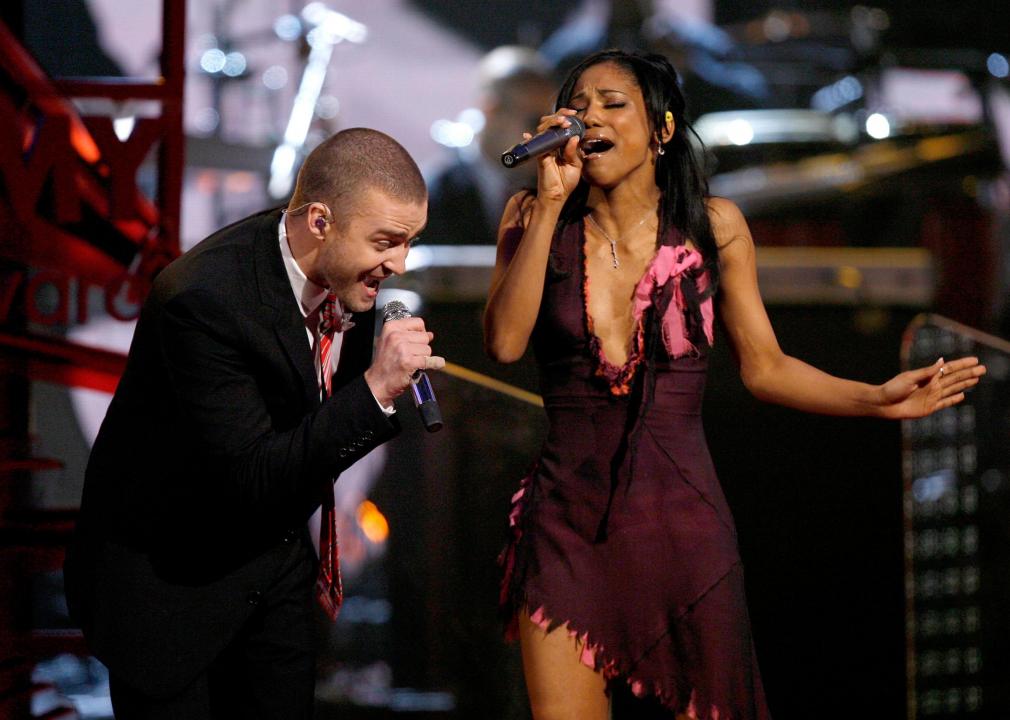 [Pictured: Singers Justin Timberlake and “My Grammy Moment” winner Robyn Troup perform “Ain’t No Sunshine” onstage at the 49th Annual Grammy Awards.]