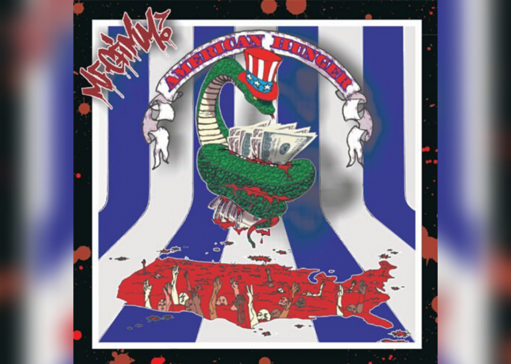 The first triple album in hip-hop history, MF Grimm’s “American Hunger” tells a story about government crimes against its people, and people against people. It follows themes of social justice (or injustice), and the daily battles of a race-divided society. The discs are titled, “Breakfast,” “Lunch,” and “The Last Supper.”