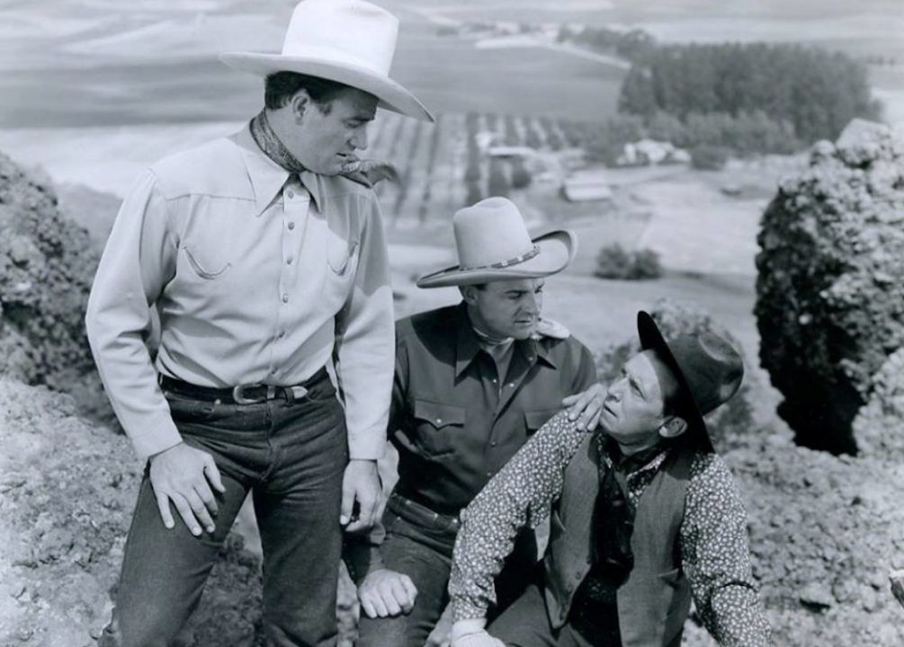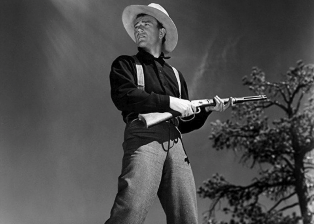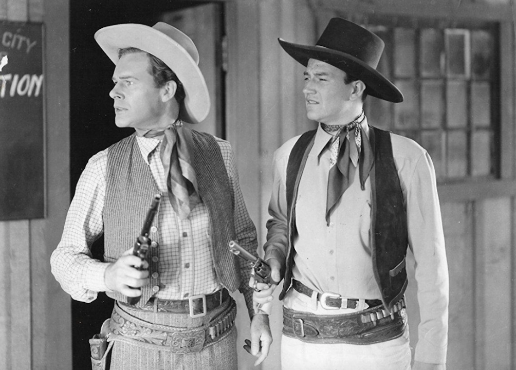 Released in 1939, this low-budget, “Poverty Row” Western stars Wayne as Stony Brooke (seriously), leader of a vigilante gang. Wayne and his co-stars battle an evil landlord who controls and taxes everything on his 13-million acre ranch. Wayne’s men attack at night, earning the nickname, “Night Riders.”