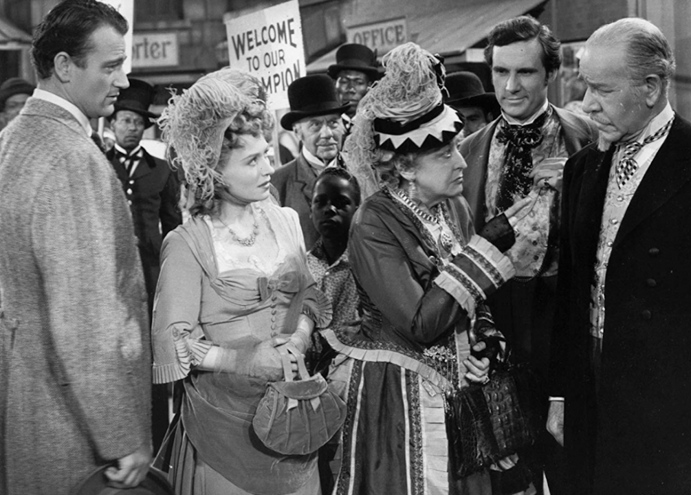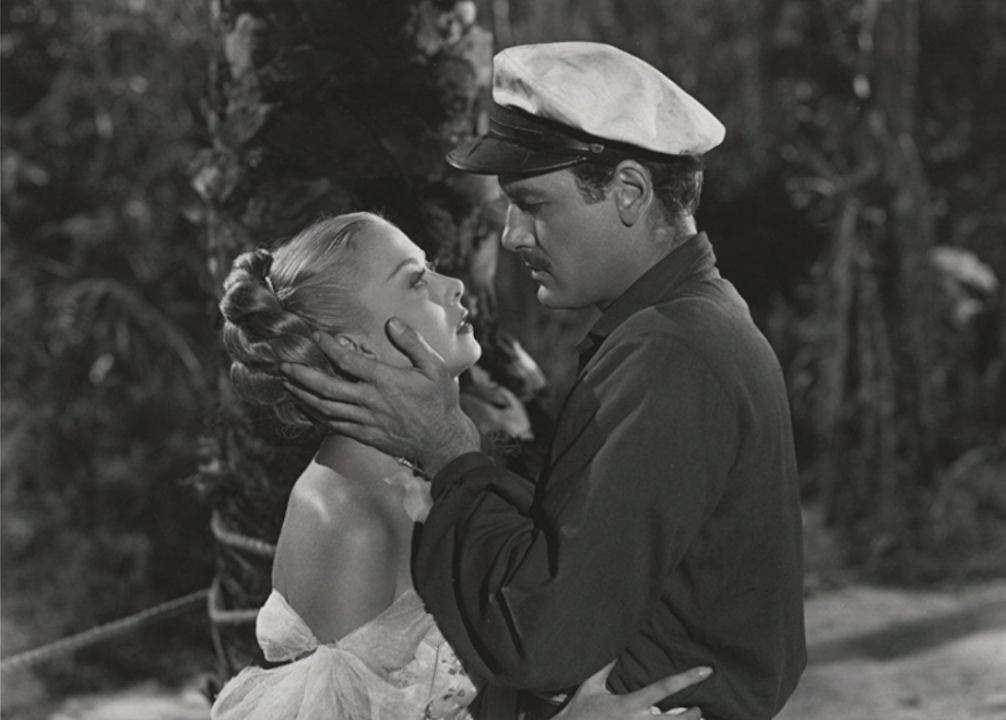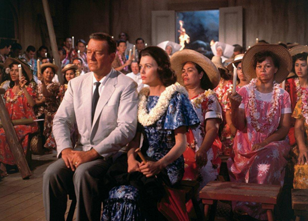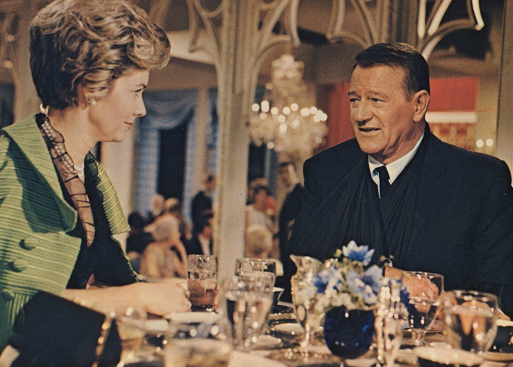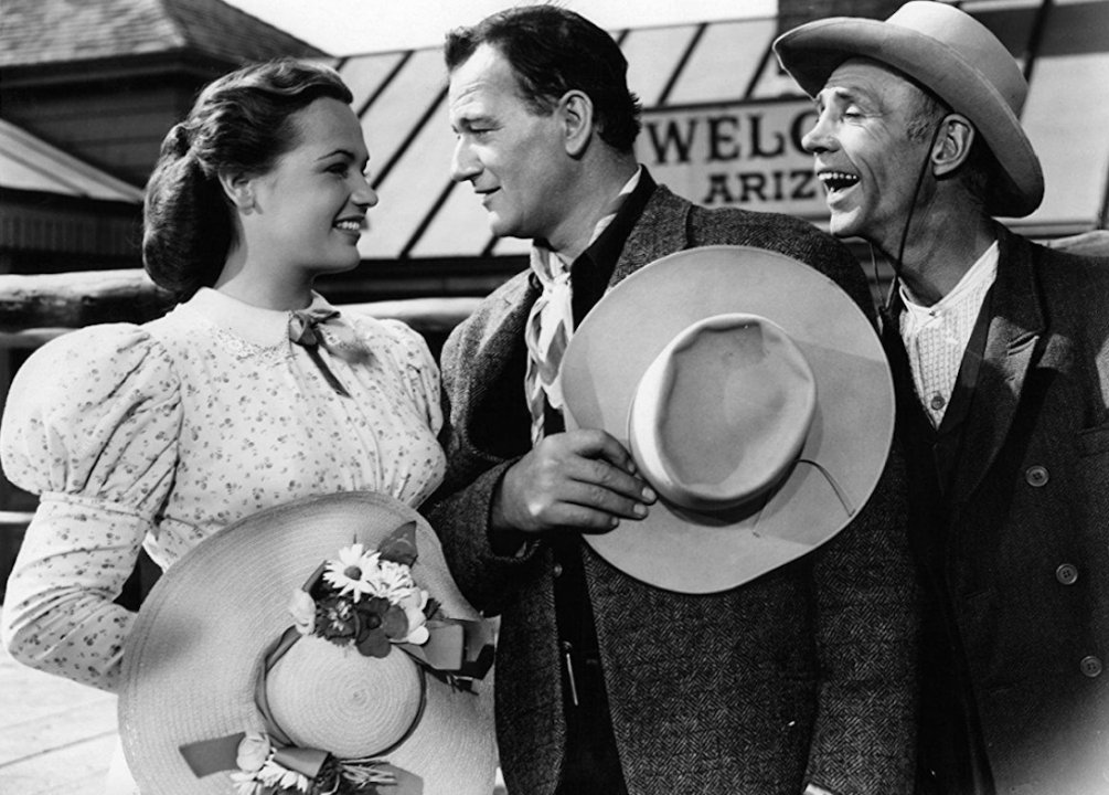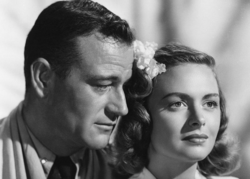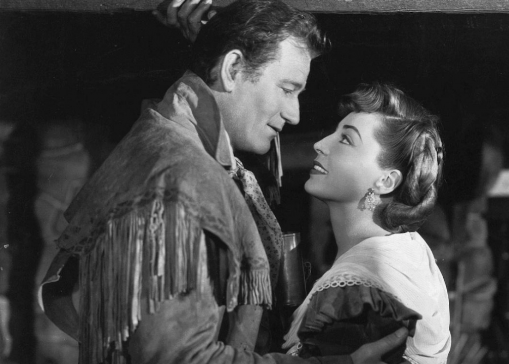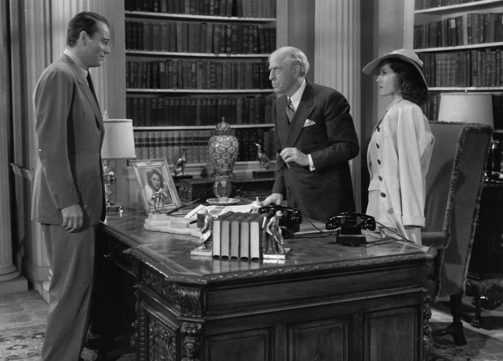 In this 1942 romance, Wayne’s character, casino-steamboat owner Jack Morgan, falls in love with his business partner, the wannabe socialite Jenny Blake. After Blake marries a man from the upper crust, Morgan pursues her anyway. Blake’s husband ends up dead from an unintentional poisoning after which Morgan swoops in.