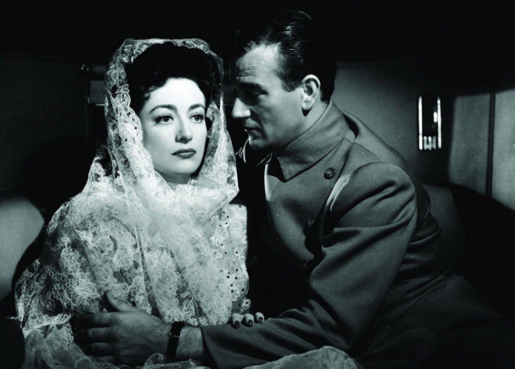 Wayne stars opposite screen legend Joan Crawford in 1942’s “Reunion in France,” about a Frenchwoman who hides an American pilot from the Nazis during World War II. It was rumored that Crawford tried to seduce Wayne behind the scenes but was rebuffed by the married actor.