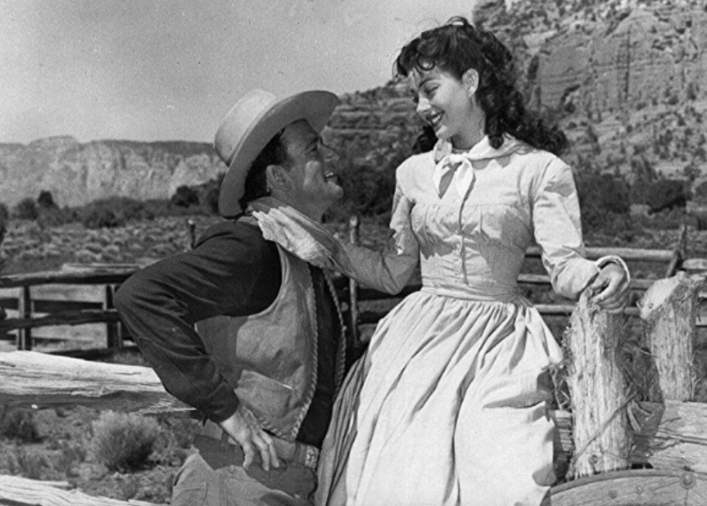 “She Wore a Yellow Ribbon” features Wayne once again protecting a woman from Native tribes. The 1949 film is similar to Wayne’s previous film, “Fort Apache,” and the following film, “Rio Grande.” This film was shot in Monument Valley, in glorious Technicolor no less.