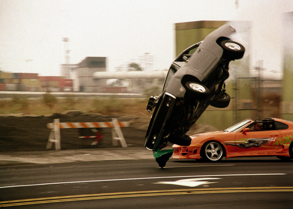 “The Fast and the Furious” is the first film in the franchise and features several legendary race scenes. In one scene at the end of the film, Los Angeles undercover cop Brian (Paul Walker) races street racer Dominic (Vin Diesel) as they both attempt to make it past an oncoming train. After they do, the black 1970 Dodge Charger that Dominic is driving flips several times before landing. It is these exciting street races that continue to drive the franchise.