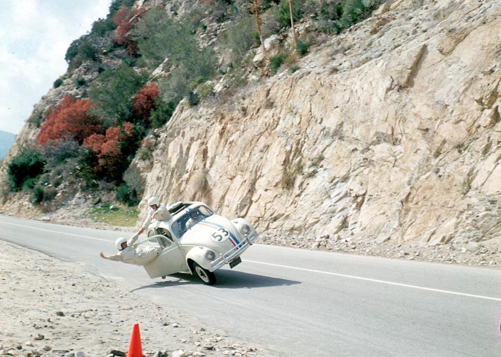 Down and out race car driver Jim Douglas (Dean Jones) begins successfully racing again with the help of a magical car, Herbie the Love Bug, a Volkswagen Beetle. Herbie’s original owner, car dealer Peter Thorndyke (David Tomlinson), decides he wants the car back after seeing Douglas and Herbie win their first race. Thorndyke challenges Douglas to race him for ownership of the car. At the race, Herbie proves he has a mind of his own and divides himself in two allowing his back end to take first place and his front end to place third.