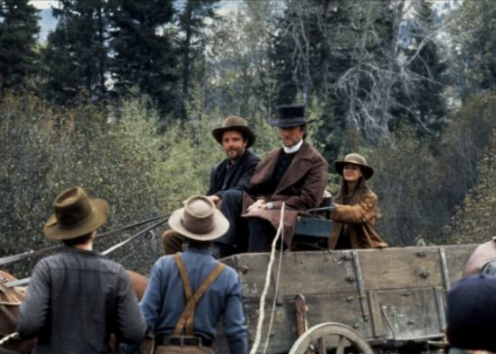 Clint Eastwood directs himself as the outlaw gunman who tries to leave his tragic past behind. After his family’s murder, he joins the confederate army, engages in illegal bloodshed, and finds himself a wanted man on the lam. Eastwood gives the character his signature stoic grit and a masculine persona bolstered by frowns and quietude.