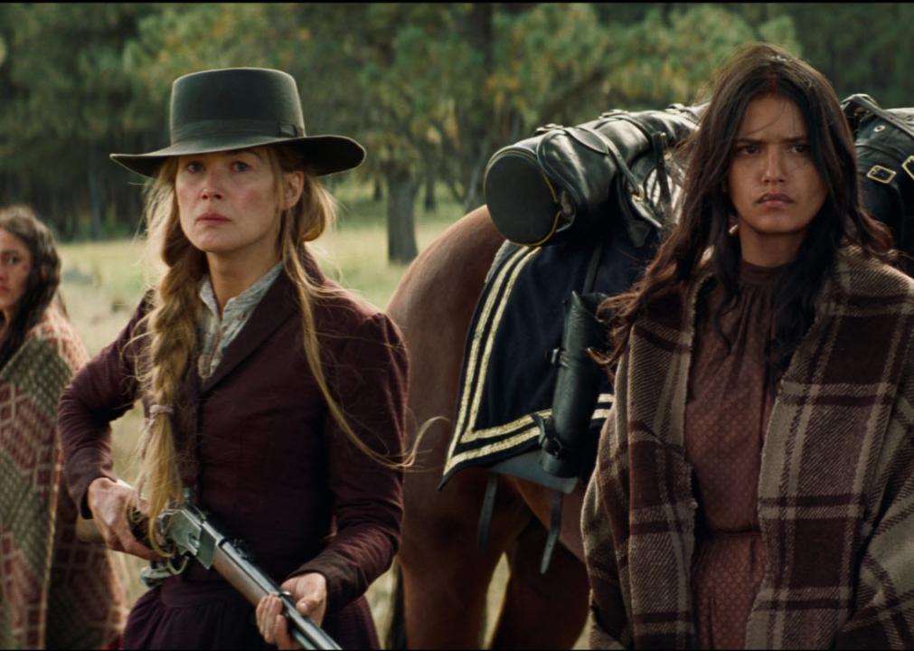“Hostiles” begins with the harrowing massacre of white homesteaders by Comanche brutes complete with the senseless killing of innocents and war cries. The film shows that American troops are also brutal, but somehow less so. Christian Bale plays a captain assigned to transfer an Apache man (Wes Studi) and his family home. The ending offers the bleak hope of love and makeshift families after a vicious loss.