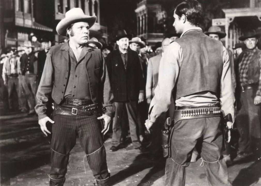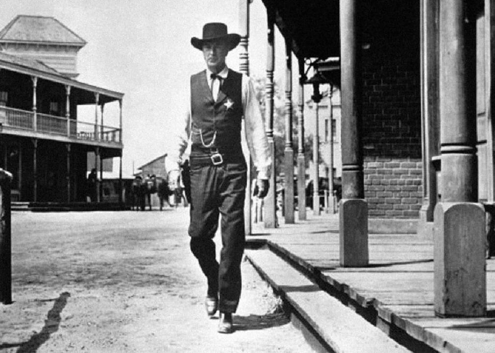 This quintessential classic Western displays the iconography of the old town shootout and its revelry in honor and justice. Gary Cooper and Grace Kelly play newlyweds set to skip town and start anew. Once Cooper, as a soon-to-be-retired sheriff, learns when bad guys approach, he’s conflicted over leaving with his pacifist wife or staying for his code of honor. The movie’s running time replicates the “real time” of the movie, the 80 minutes or so before a departing train and the arrival of the evil gunman.