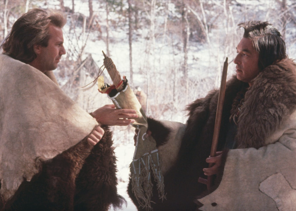 Kevin Costner’s rhapsodic epic posits the idea of the “one good white man” who understands Indigenous people and values their ways as contrasted with incoming colonial expansion in post-Civil War America. Costner plays an army captain stationed on the plains who romances a white woman raised in a Sioux tribe as he immerses in their culture and earns the name “Dances with Wolves.”