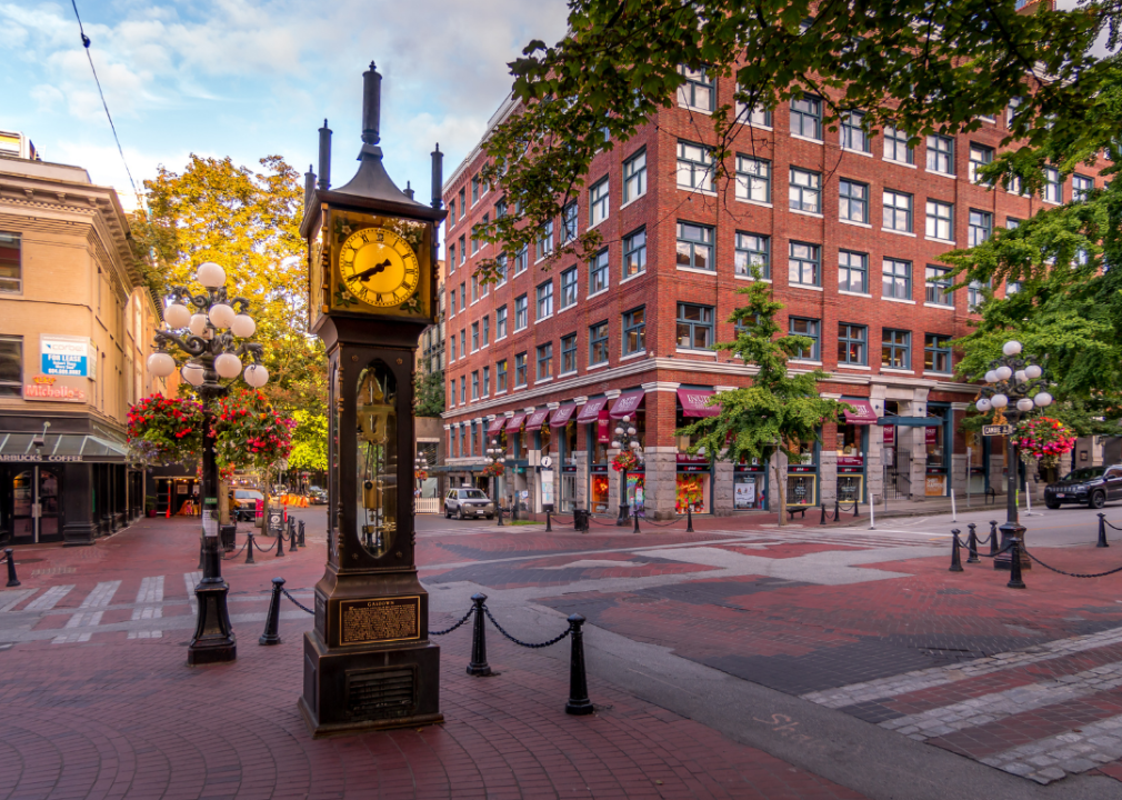 Intersection and clock in Gastown Vancouver