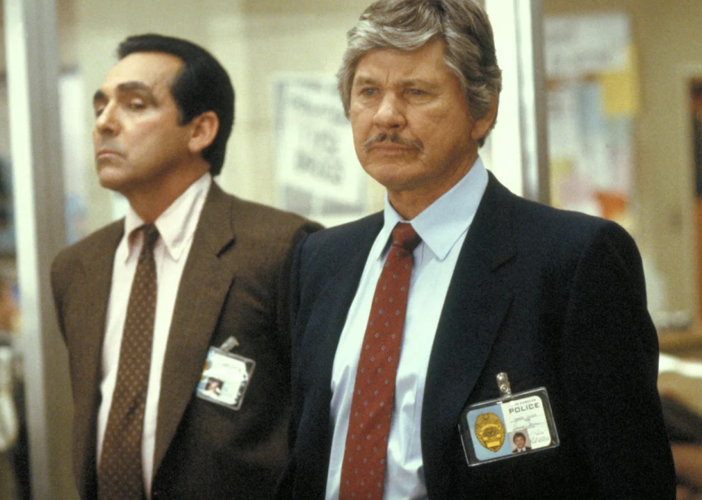 Charles Bronson and Perry Lopez in “Kinjite: Forbidden Subjects”