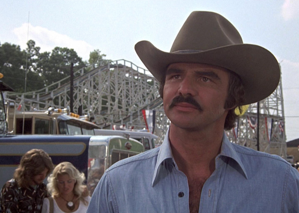 Burt Reynolds in Smokey and the Bandit in front of the truck rodeo.
