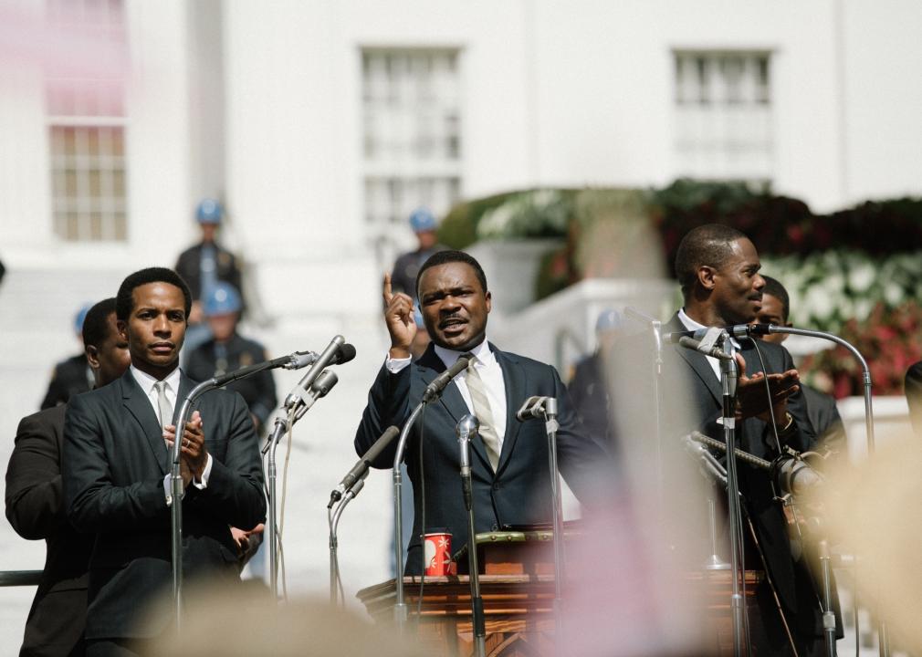 David Oyelowo, playing Martin Luther King Jr., giving a speech.