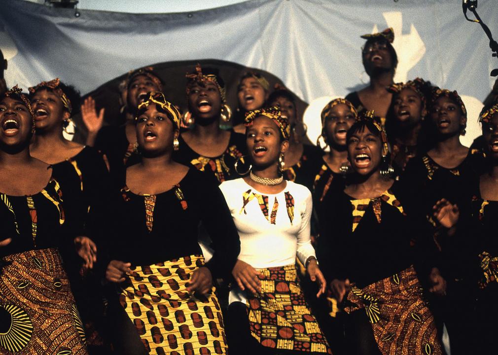 [Pictured: Kennedy Gospel Choir performing at the New Orleans Jazz Festival 1994.]