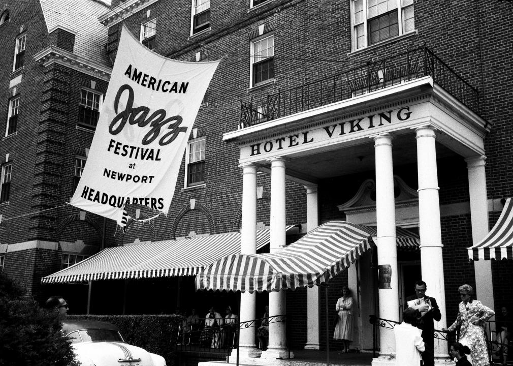 [Pictured: The Hotel Viking stands ready to serve as headquarters for the American Jazz Festival (later renamed the Newport Jazz Festival) in July 1958 in Newport, Rhode Island.]