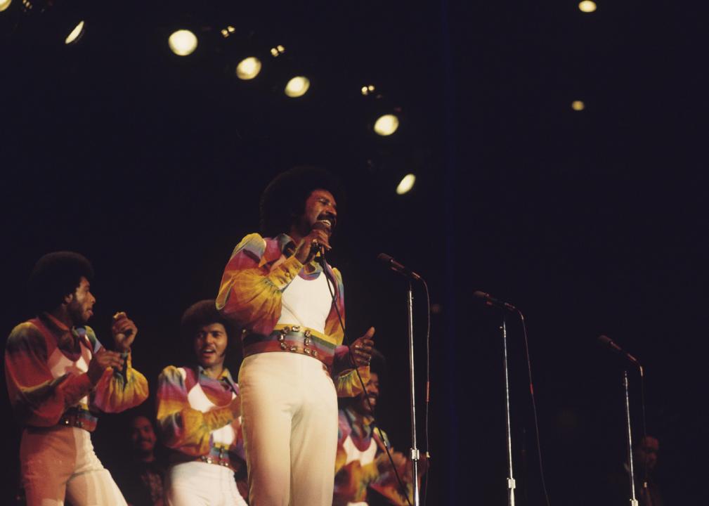[Pictured: American vocal group The Chi-Lites perform on stage at the Kool Jazz Festival in 1976.]