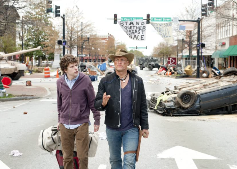 Woody Harrelson and Jessie Eisenberg in a scene from ‘Zombieland’