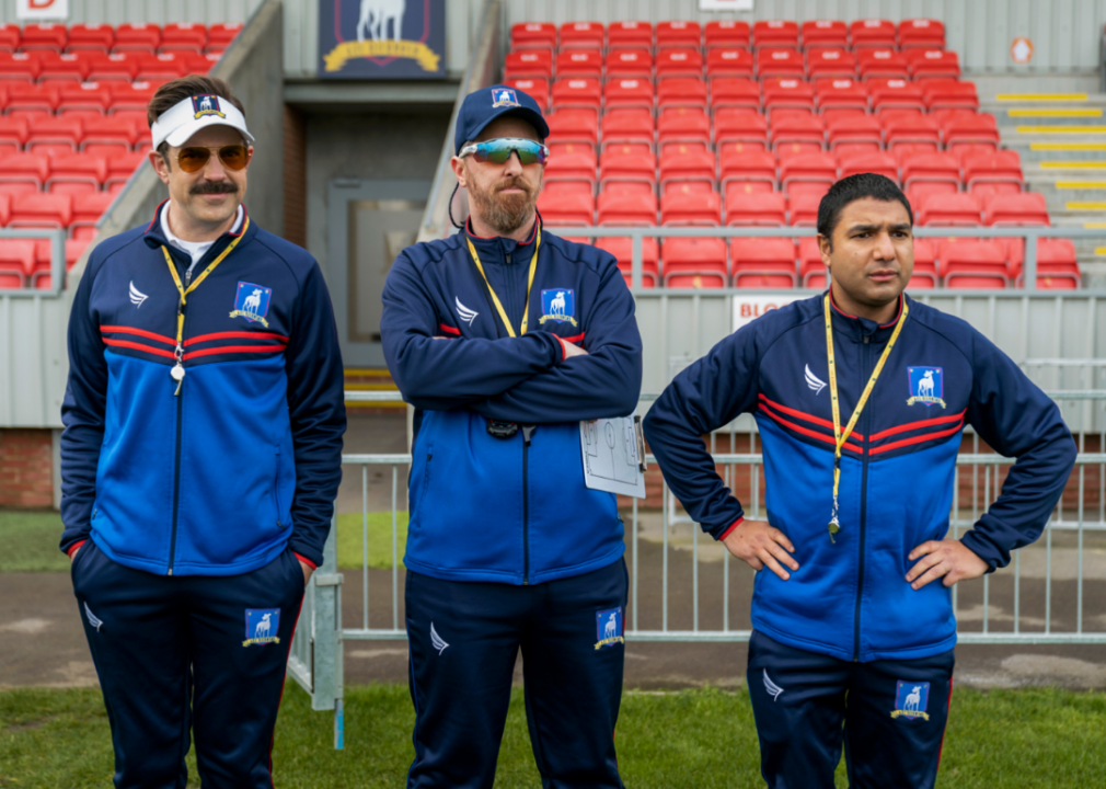 Brendan Hunt, Jason Sudeikis, and Nick Mohammed in a scene from ‘Ted Lasso’.