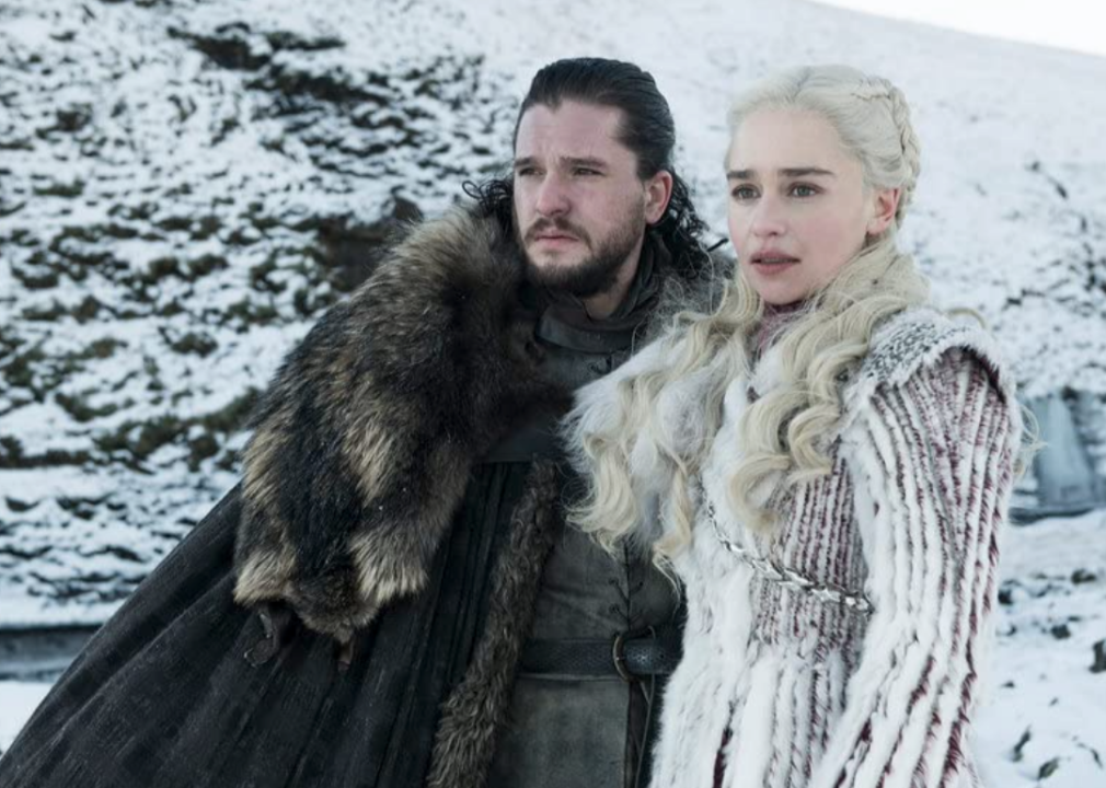 Kit Harington and Emilia Clarke in a scene from ‘Game of Thrones.’