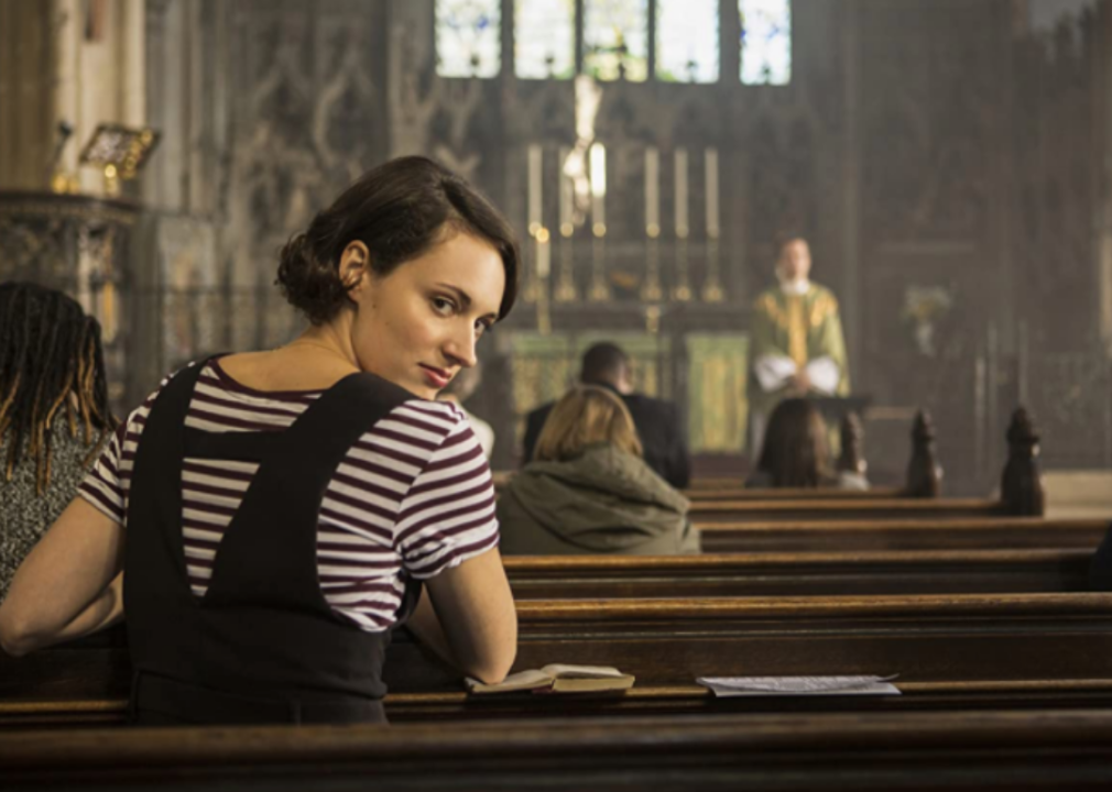 Phoebe Waller-Bridge looks over her shoulder in a scene from ‘Fleabag.’