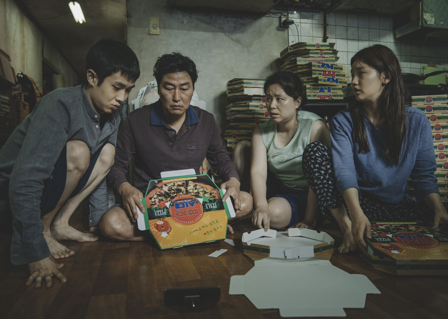 Song Kang-ho, Jang Hye-jin, Choi Woo-sik, and Park So-dam in “Parasite”