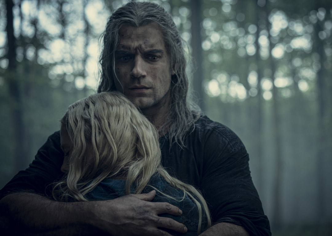 Henry Cavill and Freya Allan in a scene from ‘The Witcher’