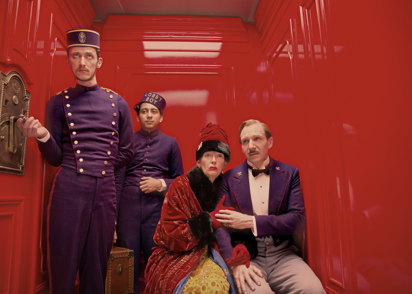 Ralph Fiennes, Tilda Swinton, Tony Revolori, and Paul Schlase in “The Grand Budapest Hotel”
