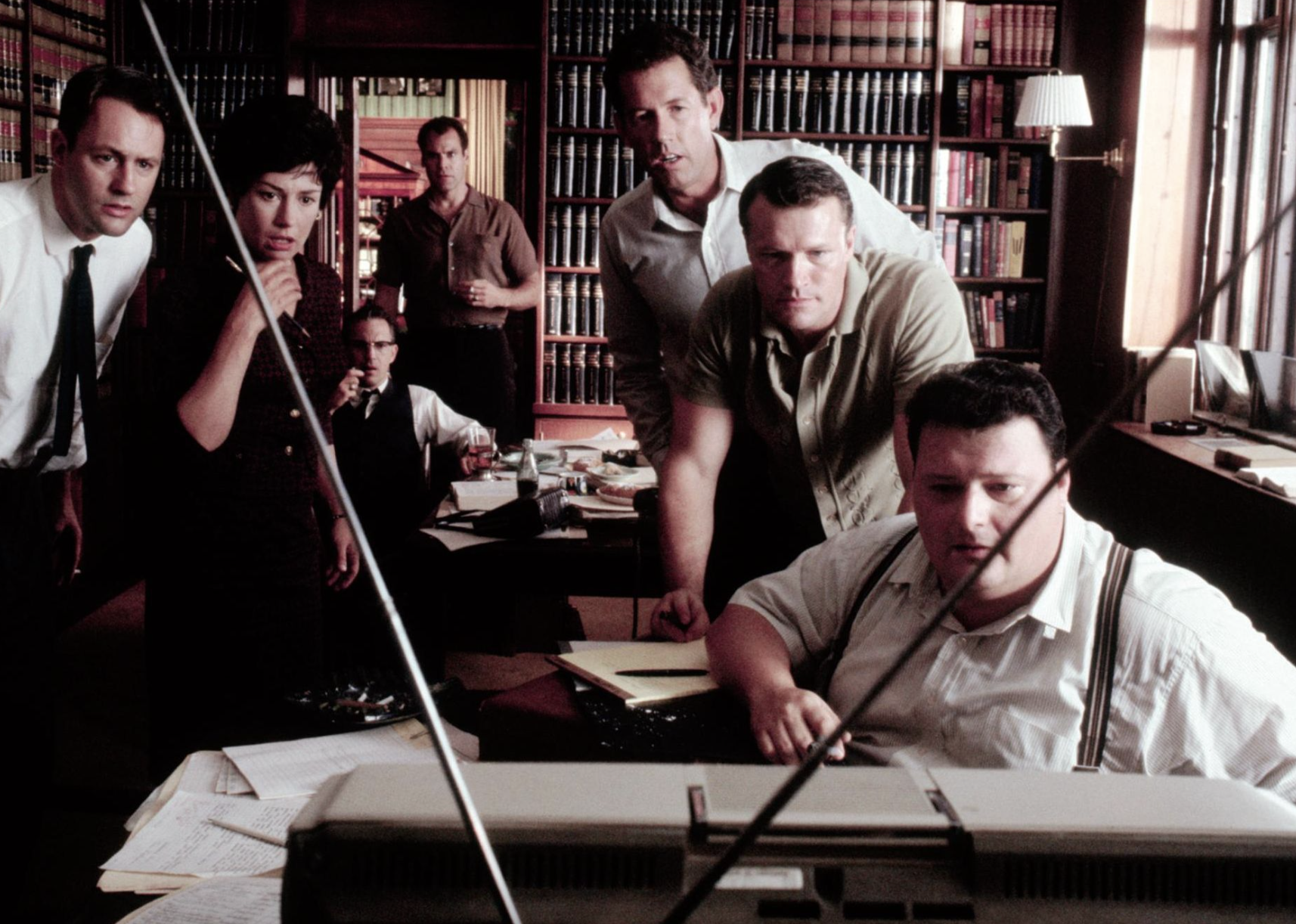 Kevin Costner, Wayne Knight, Gary Grubbs, Laurie Metcalf, Michael Rooker, and Jay O. Sanders in “JFK”