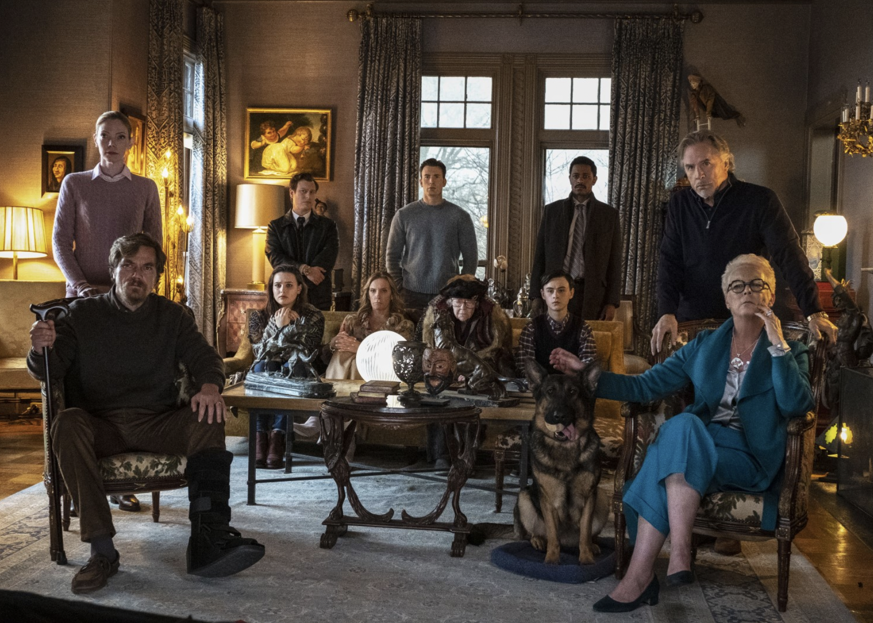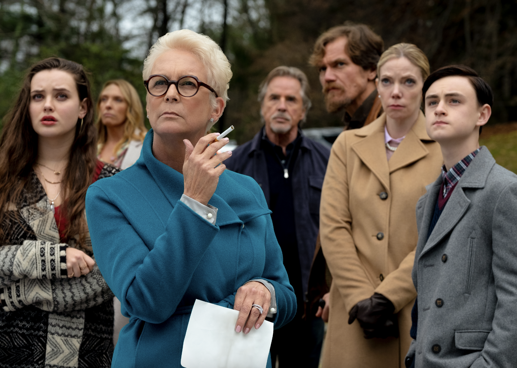 Jamie Lee Curtis, Don Johnson, Toni Collette, Michael Shannon, Riki Lindhome, Jaeden Martell, and Katherine Langford in “Knives Out”