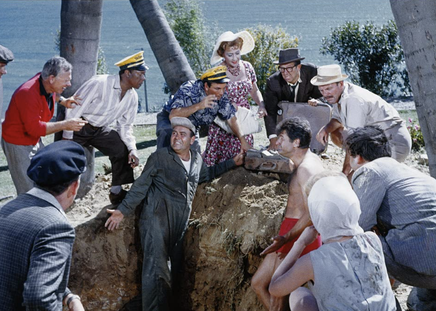 The cast of “It’s a Mad, Mad, Mad, Mad World” in a scene from the film