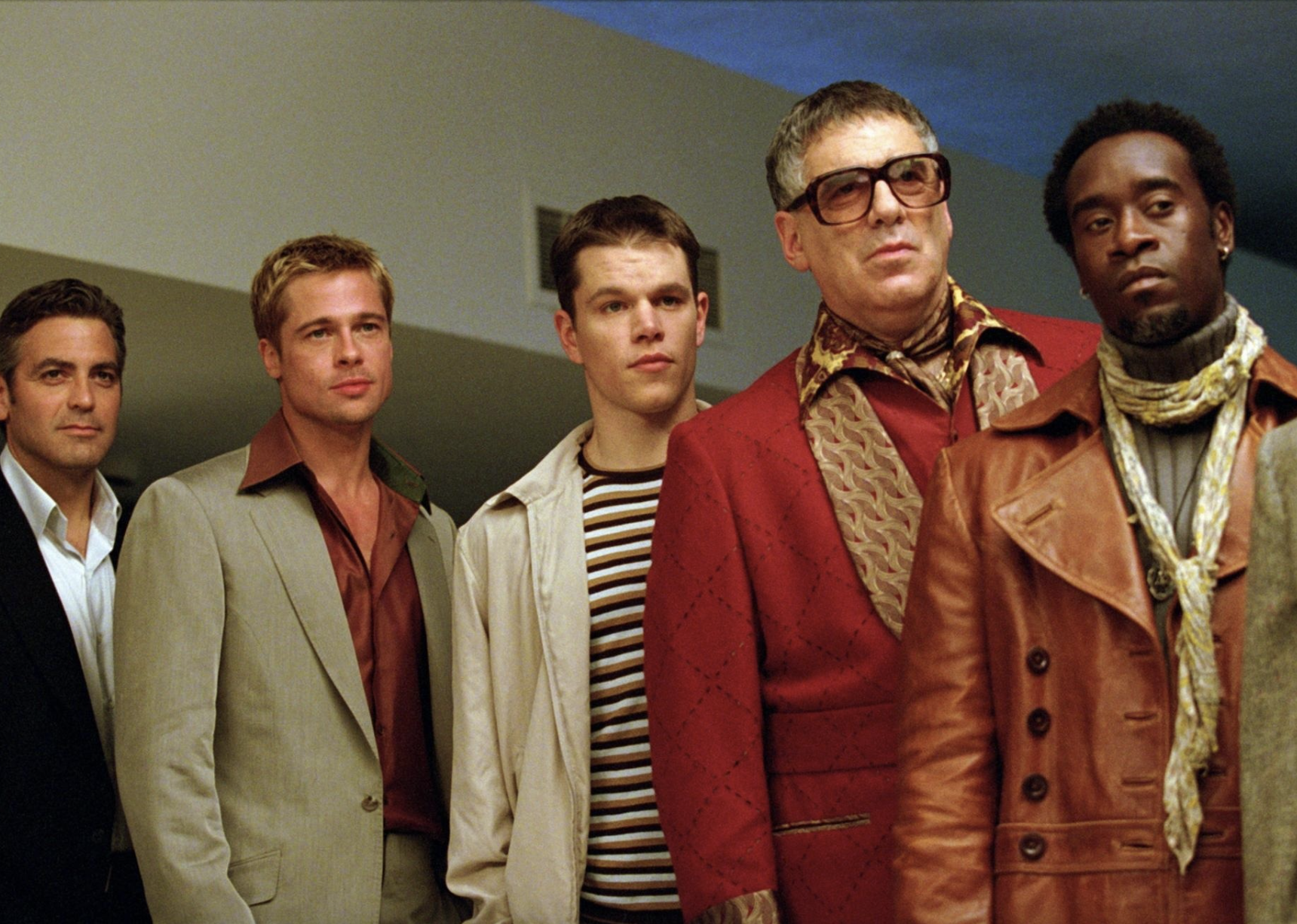 Brad Pitt, George Clooney, Don Cheadle, Matt Damon, and Elliott Gould in “Ocean’s Eleven”