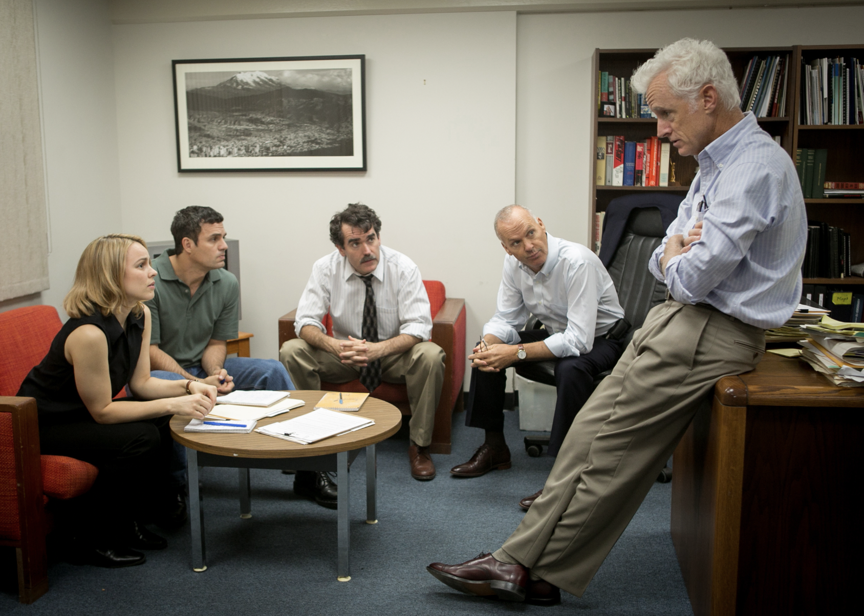 Michael Keaton, Brian d’Arcy James, Mark Ruffalo, John Slattery, and Rachel McAdams in “Spotlight”