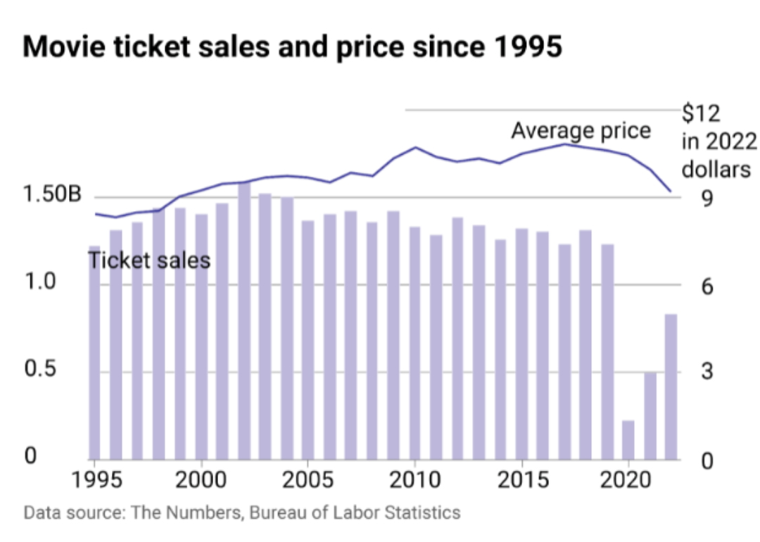 Keep reading to learn more about how movie ticket prices and sales have fluctuated over time.