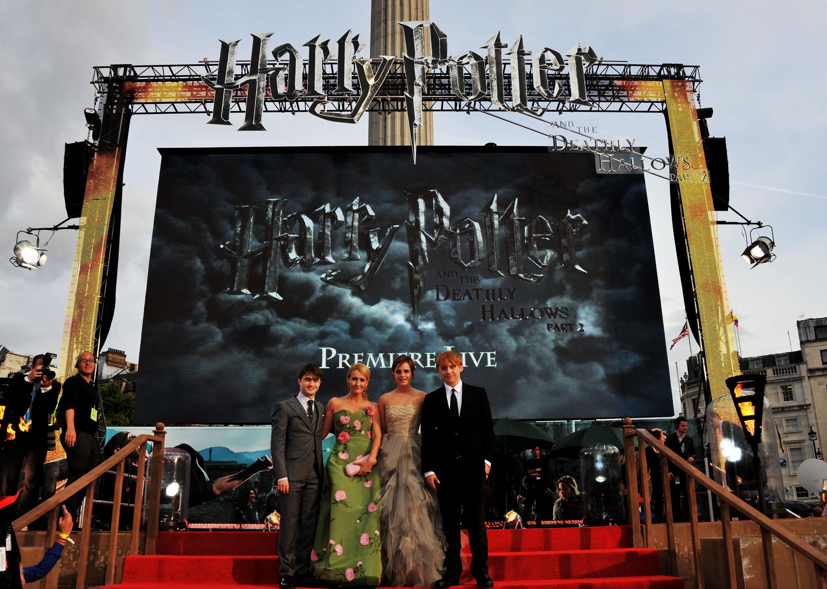 Daniel Radcliffe, J.K. Rowling, Emma Watson, and Rupert Grint attend the Harry Potter premiere.