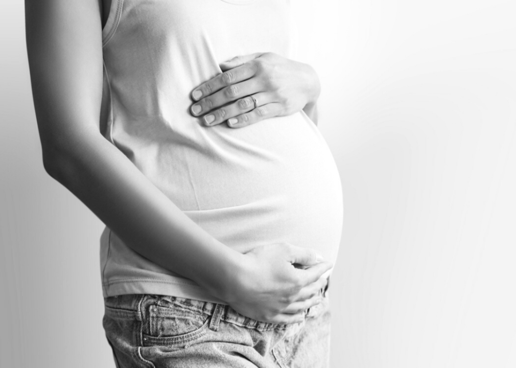 Pregnant person holds their baby bump