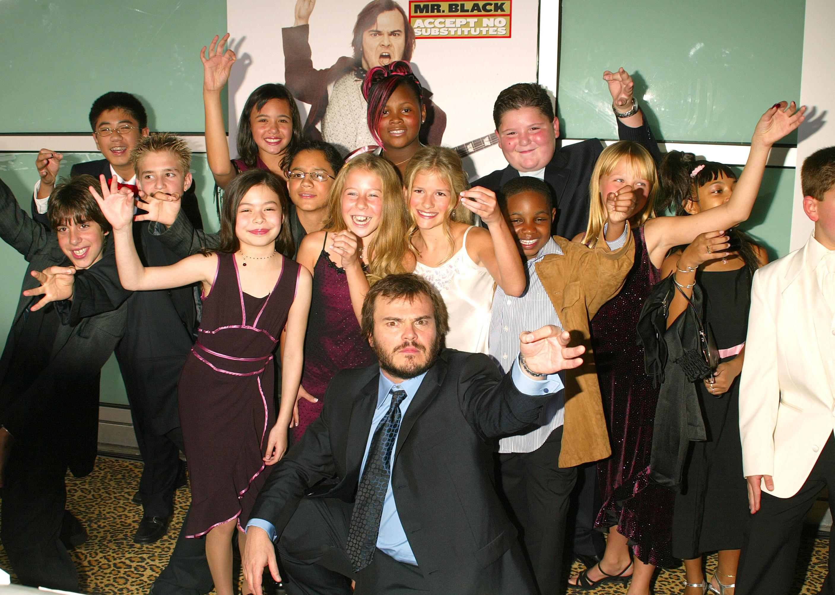 Jack Black with School Children during “School of Rock” Premiere