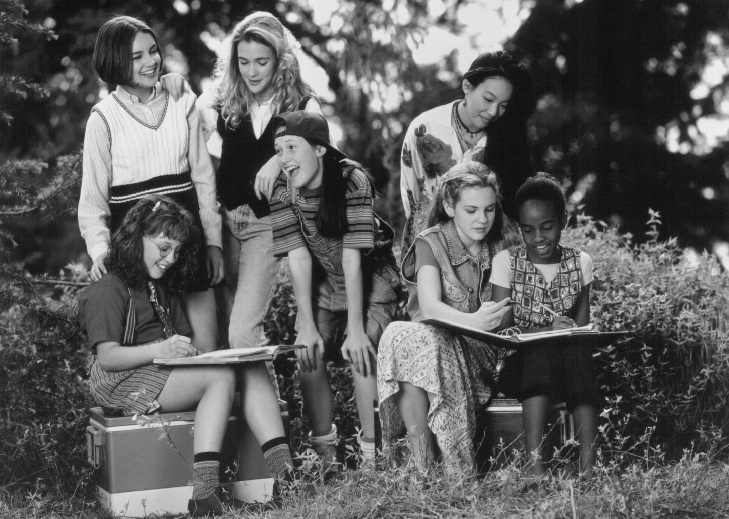 Rachael Leigh Cook, Schuyler Fisk, Bre Blair, Zelda Harris, Tricia Joe, Larisa Oleynik, and Stacy Linn Ramsower in “The Baby-Sitters Club”