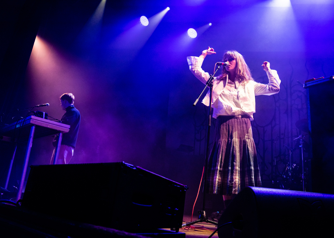 Taylor Skye and Georgia Ellery of Jockstrap performing at Islington Assembly Hall on October 27, 2021, in London, England.