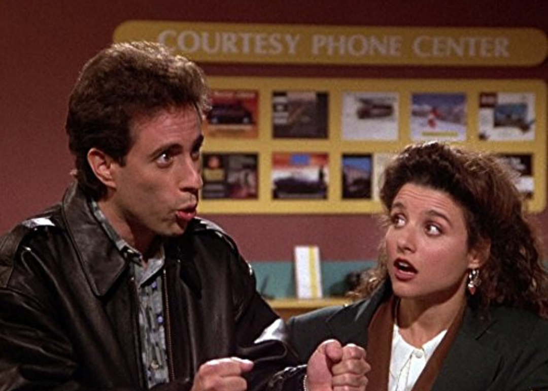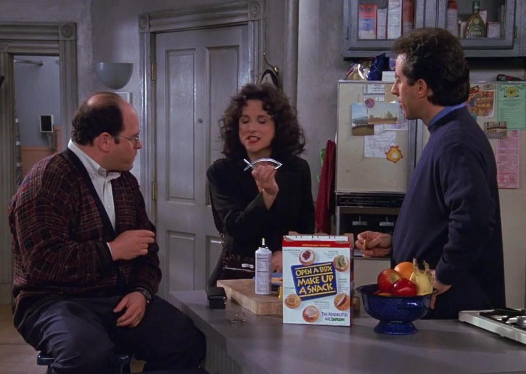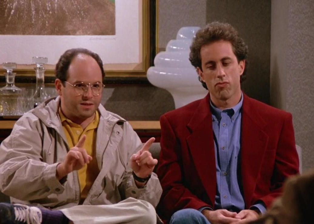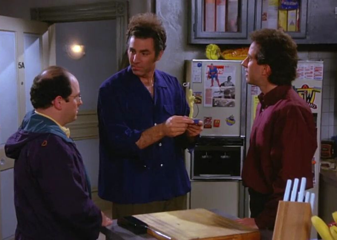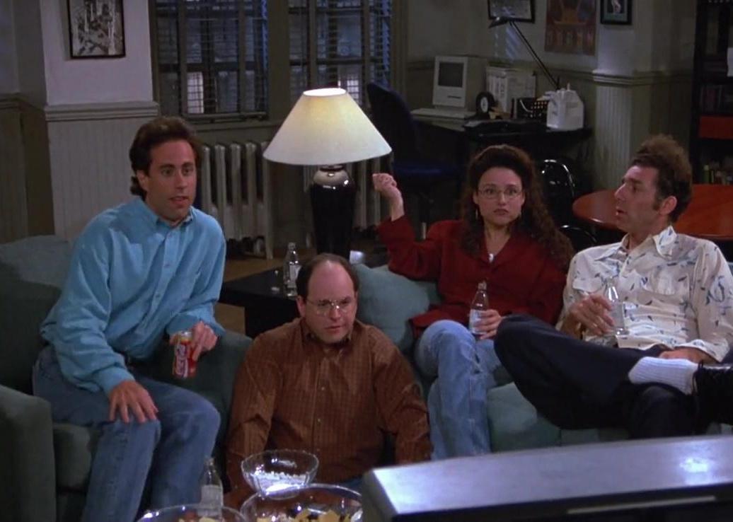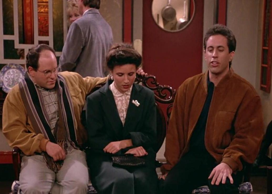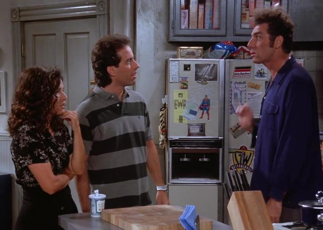 Everyone is supposed to be watching the big fight at Jerry’s apartment. Instead, all eyes are focused on a different kind of fight going down curbside. Specifically, George and a man named Mike Moffitt (played by Lee Arenberg) bicker over the rights to a parking spot, since one man was backing into the spot while the other was sliding in front-first. Every onlooker—including two police officers—take sides in the dispute, which was inspired by an incident that happened to writer Greg Daniels’ father.