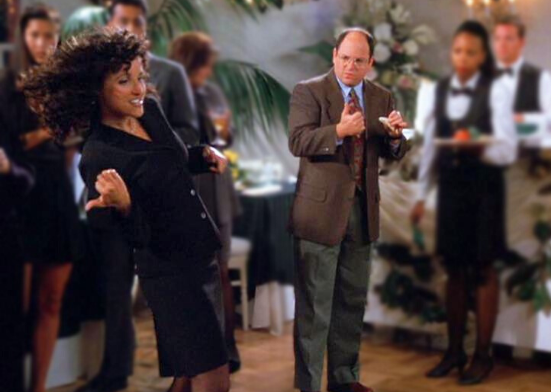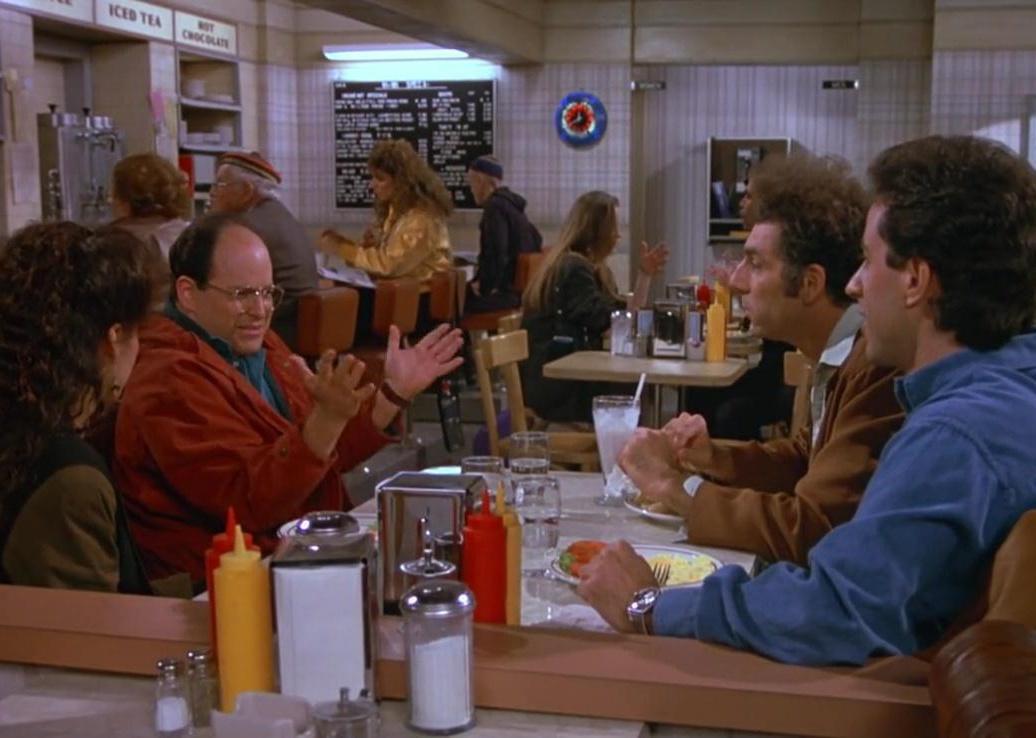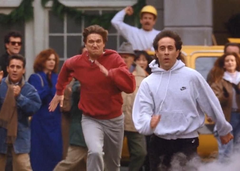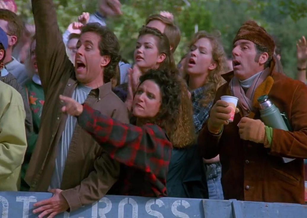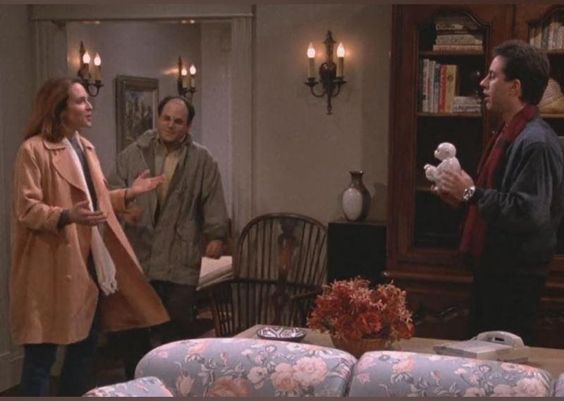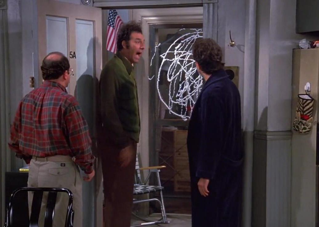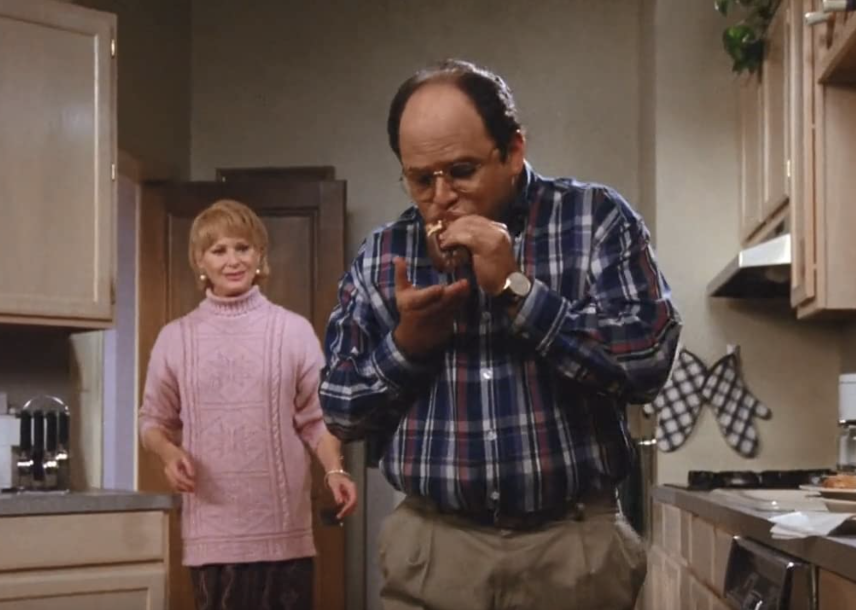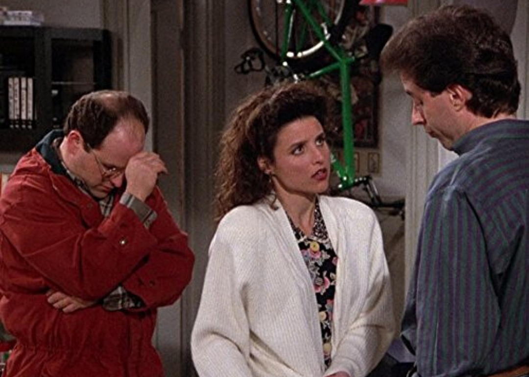 Everyone is supposed to be watching the big fight at Jerry’s apartment. Instead, all eyes are focused on a different kind of fight going down curbside. Specifically, George and a man named Mike Moffitt (played by Lee Arenberg) bicker over the rights to a parking spot, since one man was backing into the spot while the other was sliding in front-first. Every onlooker—including two police officers—take sides in the dispute, which was inspired by an incident that happened to writer Greg Daniels’ father.