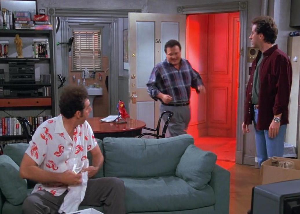 In this episode, a Kenny Rogers Roasters moves in next door to Jerry and Kramer’s building, and the restaurant’s glowing red sign keeps Kramer up at night. As a result, he and Jerry switch apartments … and personalities in the process. Jerry forces Kramer to move back upon finding out that Kramer is hooked on the chicken. Unfortunately for Kramer, however, the restaurant shuts down after Jerry distributes rat fur all over its interior.