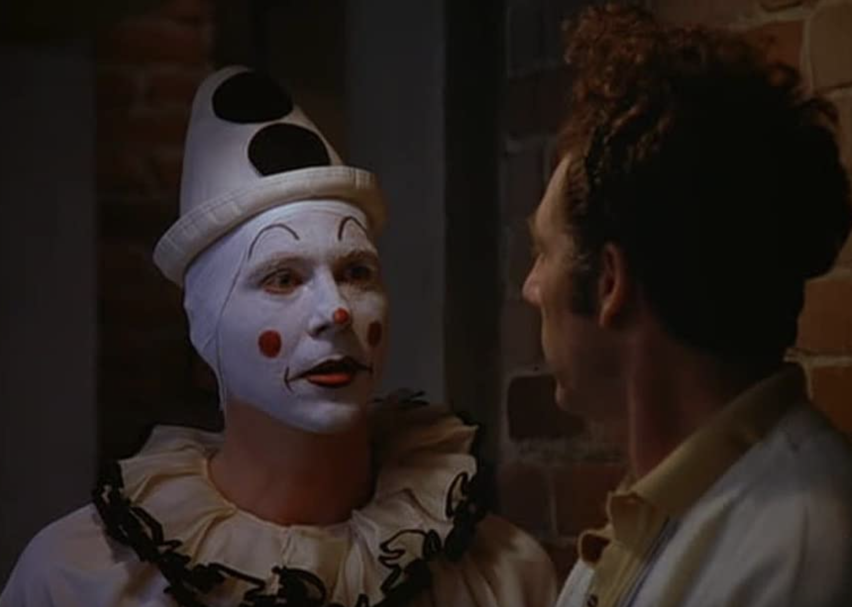 As Jerry, Elaine, George, and Kramer head to a production of the Italian opera “Pagliacci,” the episode’s plot starts to mimic that of the opera. Elaine’s boyfriend, Crazy Joe Davola, starts to suspect she and Jerry are having an affair, and when she sees photos of herself from his investigation lining his wall, she maces him with cherry Binaca. Joe shows up at the opera in a full Pagliaccio costume and Kramer accidentally sells him one of their extra tickets.