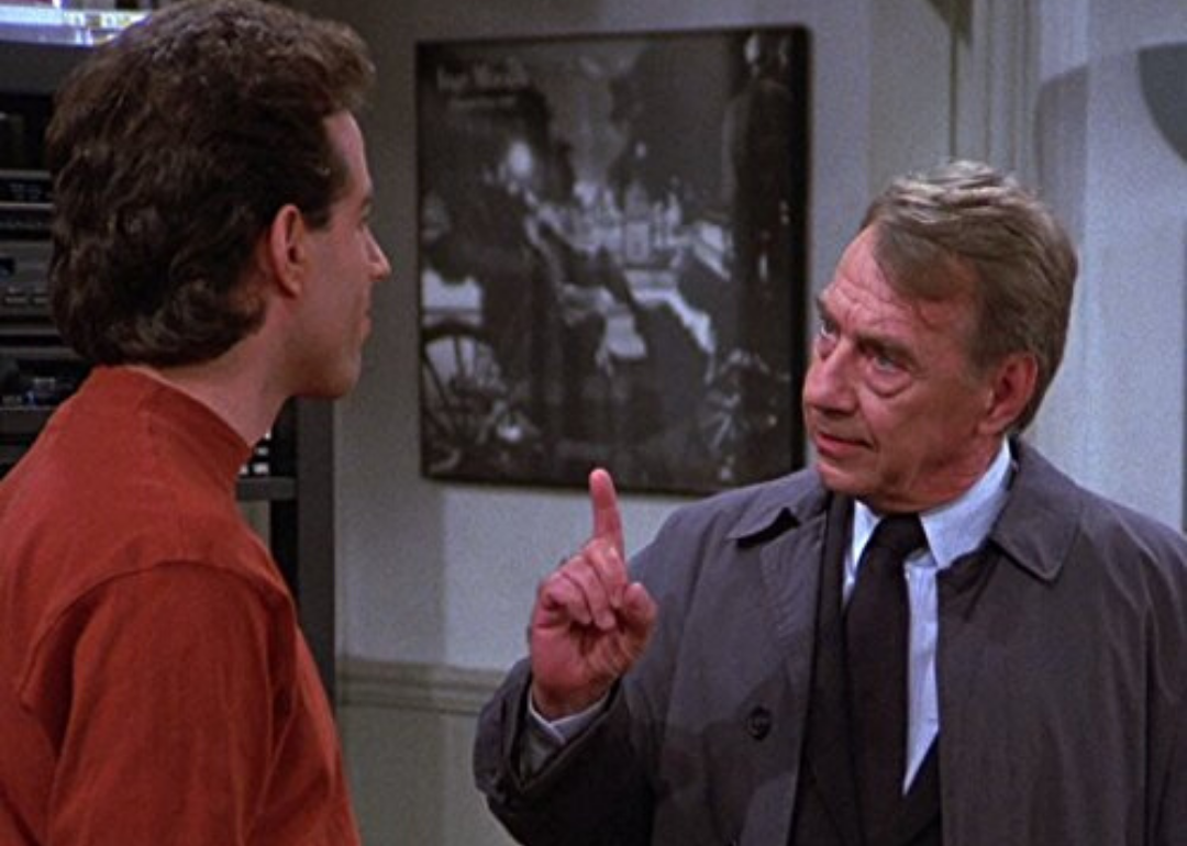 Audiences meet Elaine’s surly father for the first and only time. Played by Lawrence Tierney with perhaps a little too much authenticity, Mr. Benes doesn’t take kindly to Jerry or George and their light-hearted, humorous ways. According to legend, Tierney was originally supposed to have a recurring role on the show, but his bizarre behavior on set convinced the cast it was better not to invite him back.